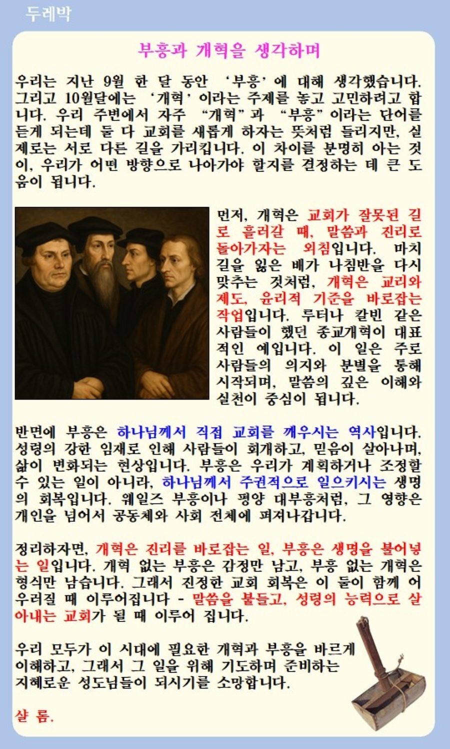 부흥과 개혁을 생각하며