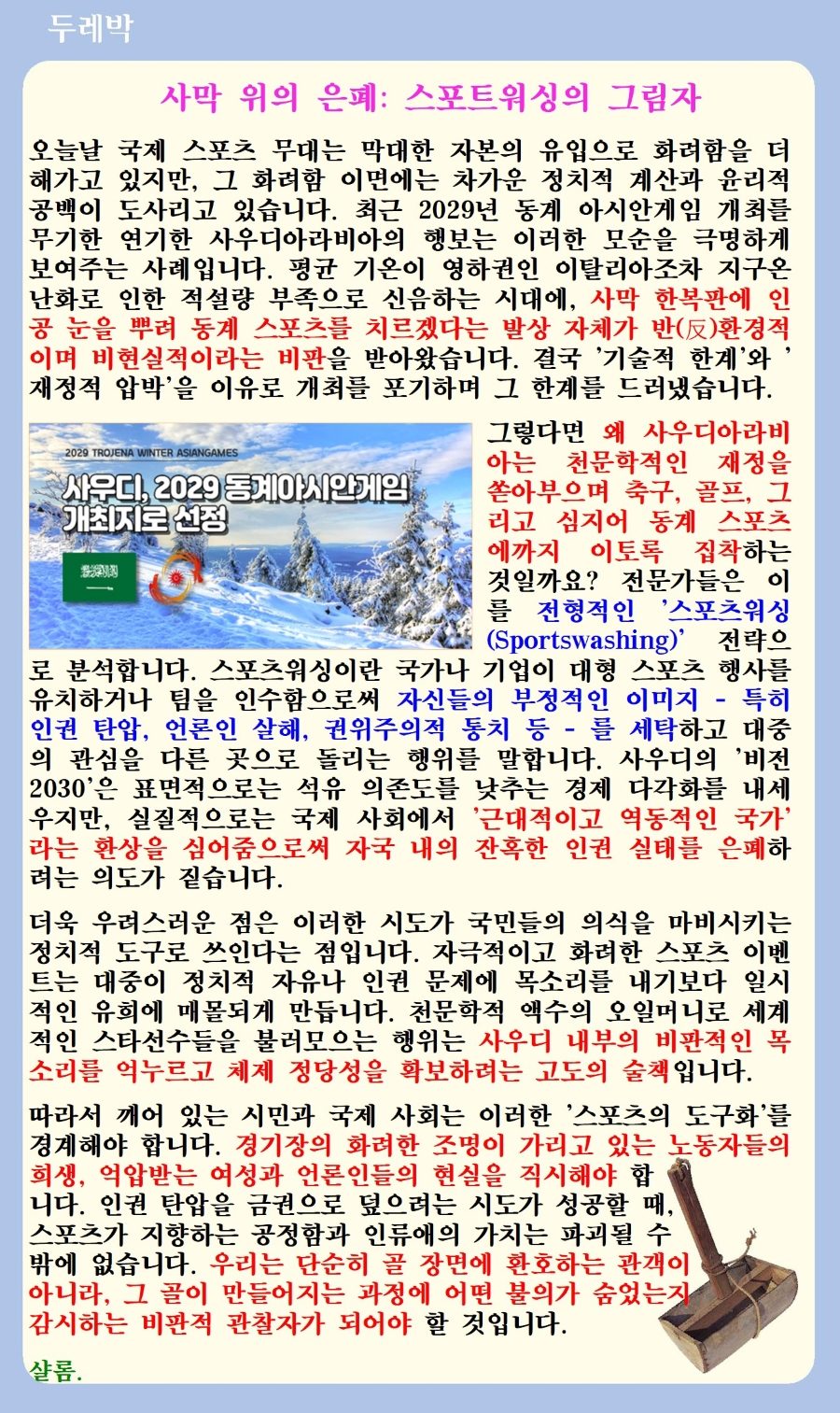 사막 위의 은폐: 스포트워싱의 그림자