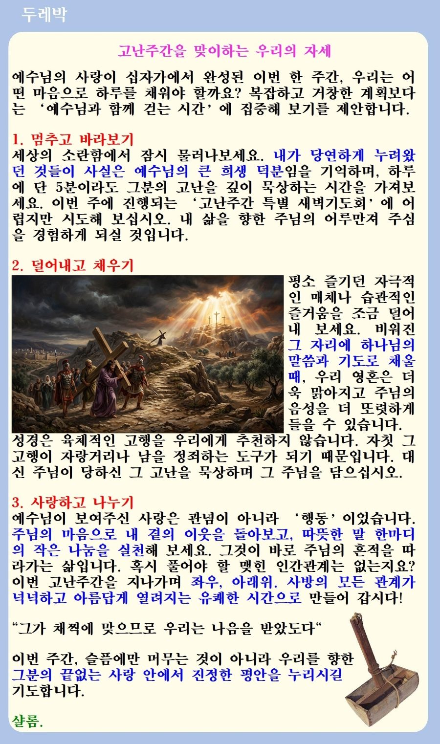 고난주간을 맞이하는 우리의 자세